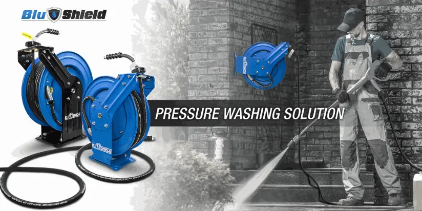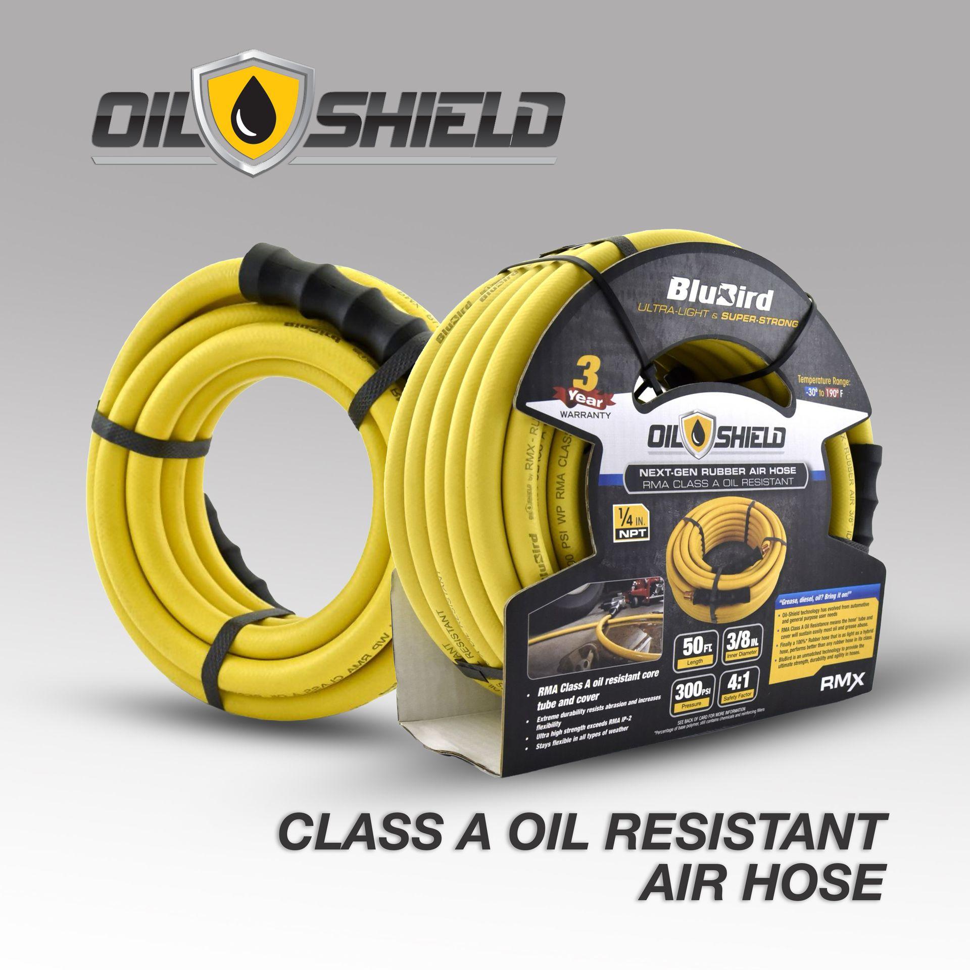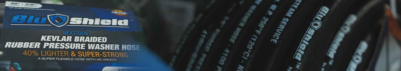 BluShield Rubber Pressure Washer Hose with RMA Class A oil resistant tube, Non-conductive Kevlar/Aramid braiding helps eliminates the risk of electrical shock. Much more flexible than wire-braid & double wire braid Pressure Washer Hoses.